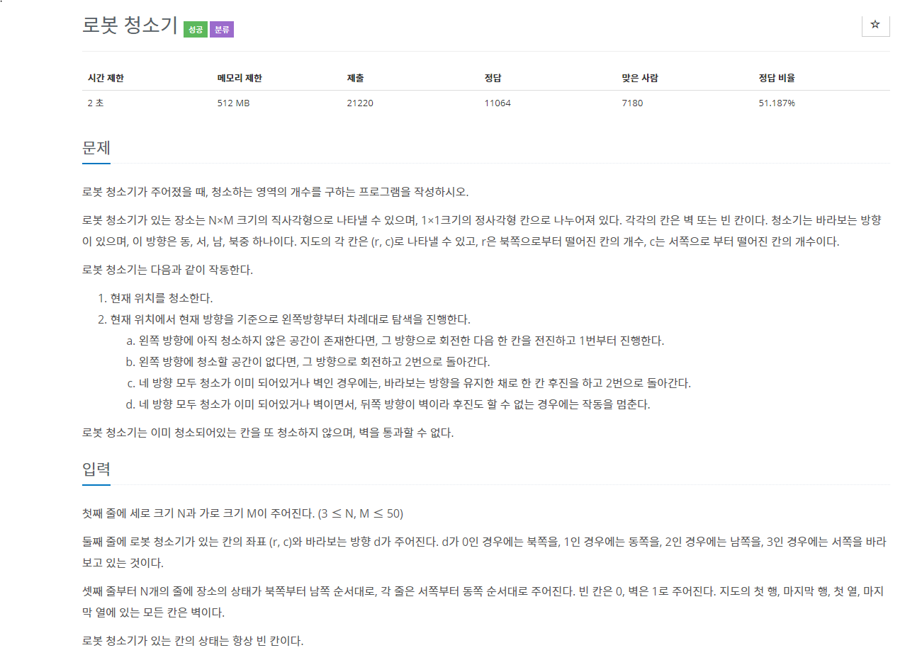 처음에 로봇청소기가 청소한 곳도 다시 돌아가지 못한다라고 생각해서 헤맸다. (벽이랑 동일하다고 생각함)