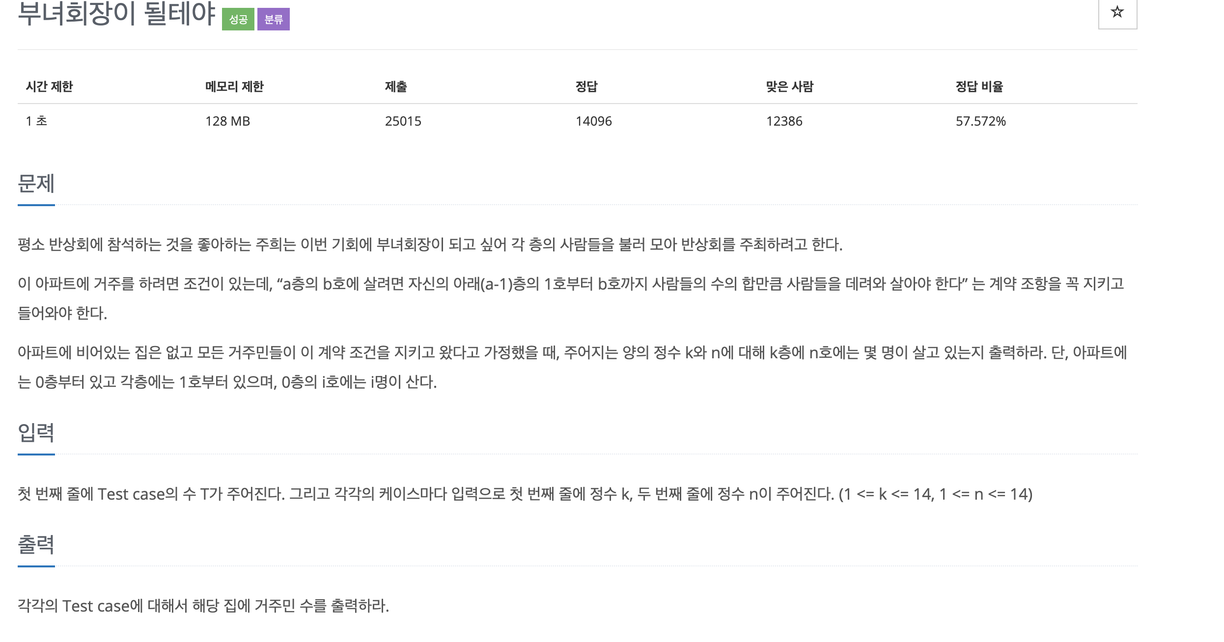 a, b가 주어지면 a층 b호에 사는 주민의 수를 구하는 문제