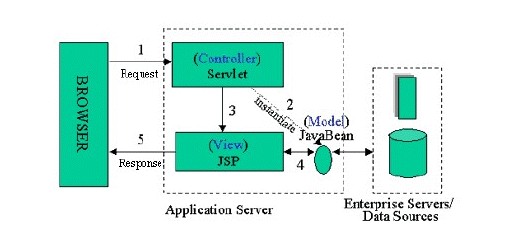 - 브라우저에서 JSP에 요청을 보내면 Java Bean에 접근해 로직을 수행함