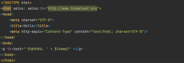 ViewResolver가 hello-template.html 이라는 View 파일을 찾아 웹 브라우저에 리턴하여 화면에 템플릿 파일이 띄워진다.