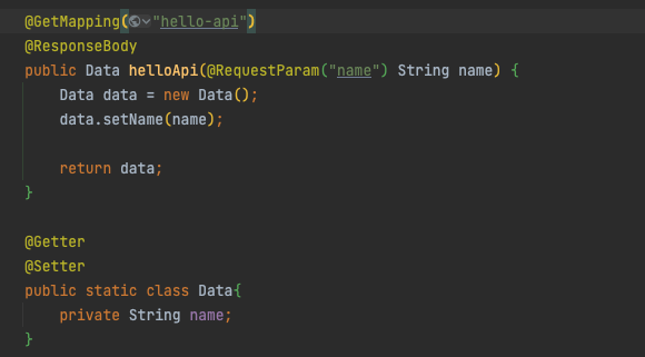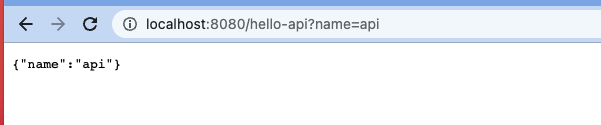 웹 브라우저에서 서버(localhost:8080) 으로 hello-api를 요청하면,