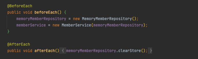 따라서 @AfterEach 를 통해 MemberMap 을 비워주도록 설정할 수 있다.
