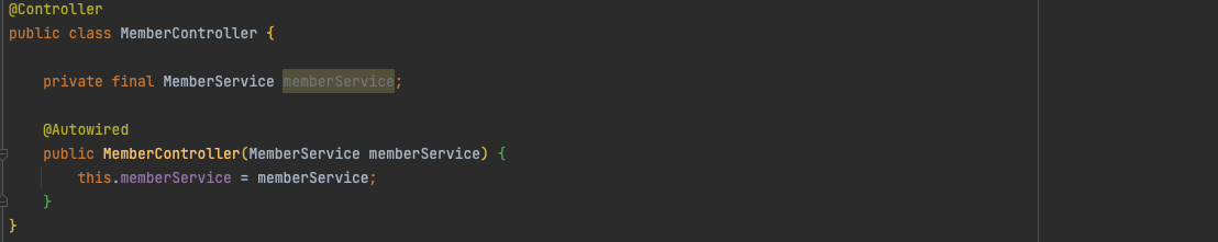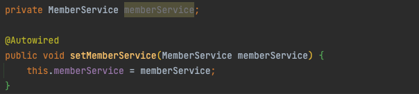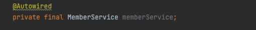 개발자가 일일이 수동으로 Bean을 등록하는 것이 아니기 때문에 @Autowired 라는 어노테이션을 통해 필요한 클래스가 자동 주입 되도록 설정해주어야 한다.