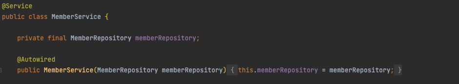 MemberService의 생성자를 보면 MemberRepository를 주입받아야 하는데 ComponentScan을 사용하면