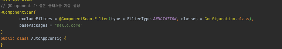 *excludeFilters = ComponentScan 시에 제외할 클래스