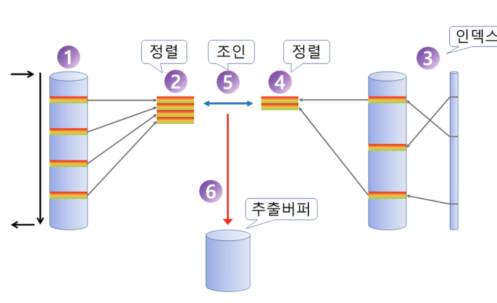 랜덤 액세스로는 부담되는 넓은 범위의 데이터처리, 마땅한 인덱스가 없을 때 사용하는 조인 방식이다.