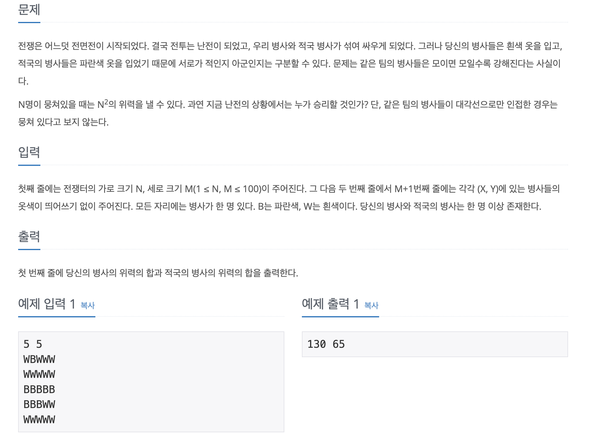 https://www.acmicpc.net/problem/1303